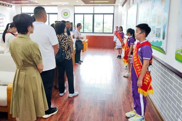 “小小法治宣讲员”向前来参观的家长开展法制宣讲。八步区城东实验小学供图