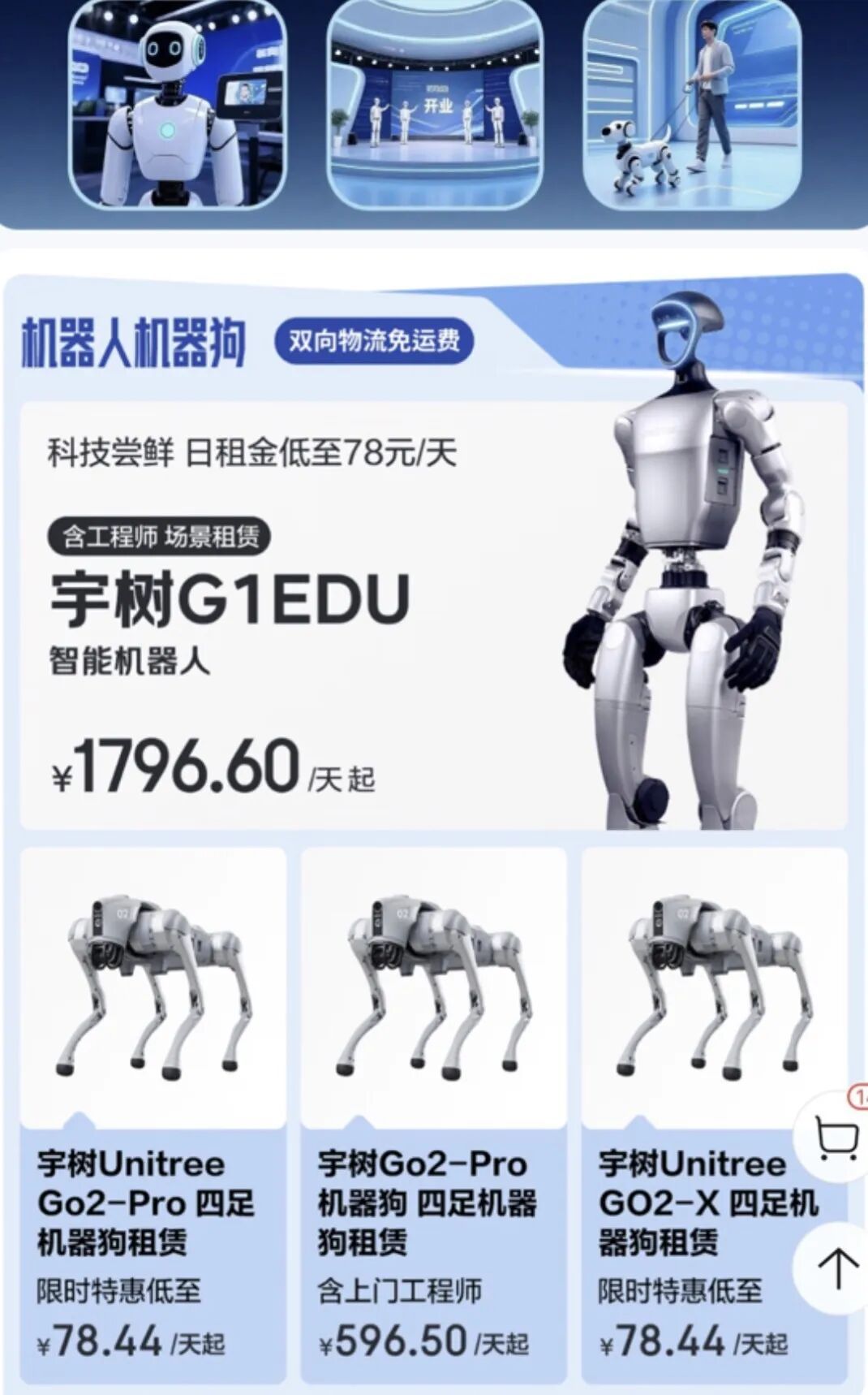 为降低消费门槛,让普通消费者敢试敢用,京东在去年推出机器人自营租赁业务,以“可买可租”的灵活模式,打造机器人消费全链路体验。在京东租赁自营旗舰店,宇树、智元热销机器狗日租金低至78元起,宇树U1、智元灵犀X2人形机器人(含上门工程师服务)的日租金低至京东1796元起。所有产品均为官方正品,搭配京东物流免费上门取送、可选择专业工程师上门调试,同时配套提供意外维修保障、质量问题快速响应乃至第三方责任险等服务保障。